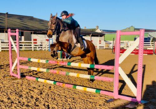 Cooper is a 16-year-old, 14.2hh bay gelding and a true been-there-done-that schoolmaster. He is the ideal pony for someone wanting to confidently step into 80cm, 90cm and 1m classes, or for a rider who wants a genuine, experienced partner to learn and progress with.