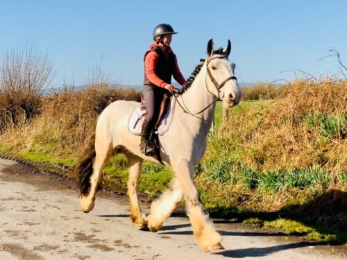 Prince – 5-year-old dun Irish Draught cross gelding standing at a quality 16.2hh, a rare and sought-after type with strong bone, presence, and a kind temperament.