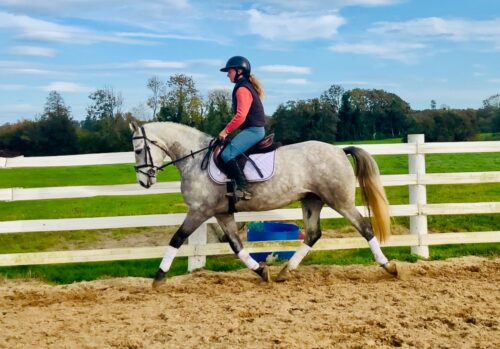Silver is easy and uncomplicated in every way. He is a dream to handle on the ground—easy to catch, box, shoe, and hack, and he is perfectly sensible in traffic, he will hack out alone or in company. Under saddle, he’s just as easy. He never gets strong, silly, or spooky, and he takes care of his rider every step of the way. He’s laid-back without being lazy and has a lovely attitude towards his work, making him a pleasure to produce.