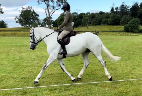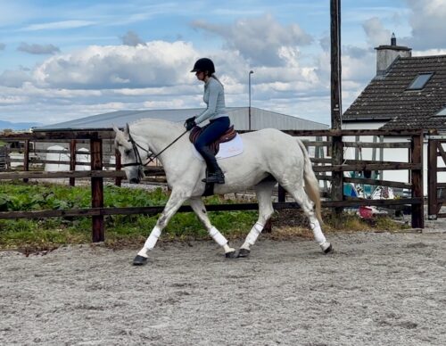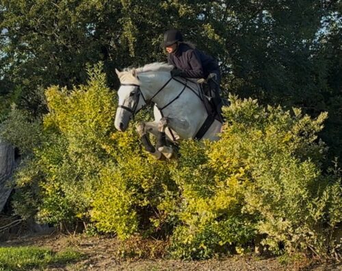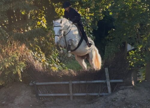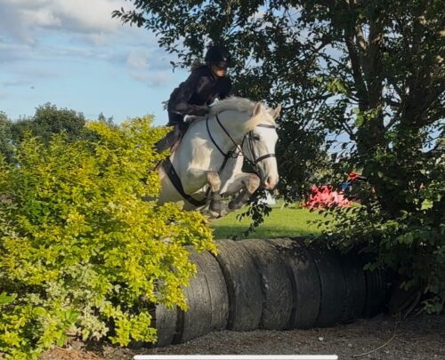 Very easy to ride round a course of fences , doesn’t rush or pull but stays in a positive rhythm. Not phased by spooky fillers and comfortably jumping around 90/1m courses.