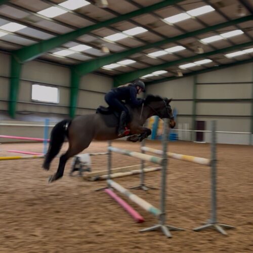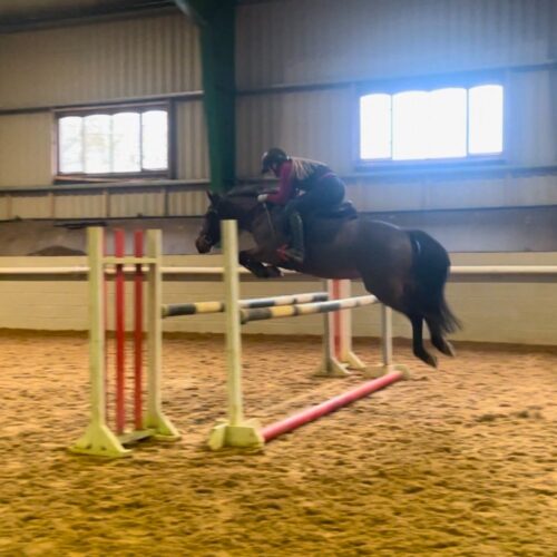 At home, Maybell has schooled around 1m courses with ease and has taken part in training shows up to 80cm. She has also enjoyed cross-country schooling, showjumping schooling, beach rides and plenty of varied hacking out alone or in company.